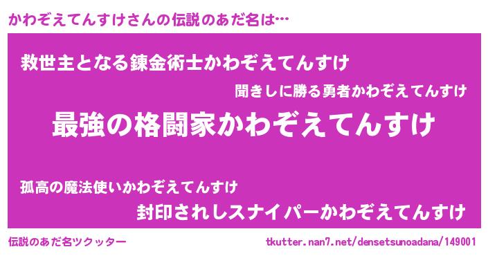 | 意味不明あだ名 | 『かわぞえてんすけフォーエバー』 |