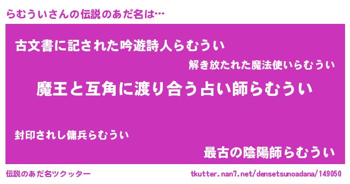 | 男性向けラノベタイトル風あだ名 | 『転生したららむういだった件』 |