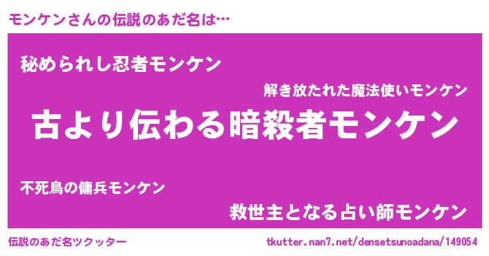 | 意味不明あだ名 | 『住所不定無職モンケン(59歳)』 |