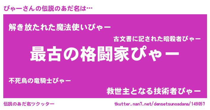 | ヒーロー風カッコイイあだ名 | 『ウルトラぴゃーマン』『仮面ピャダー』 |