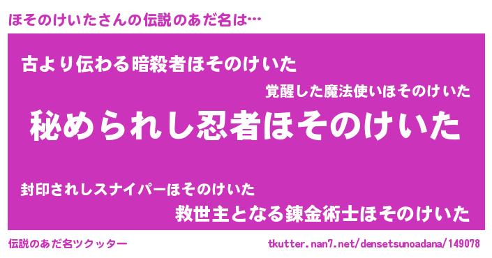 | ヒーロー風カッコイイあだ名 | 『ウルトラほそのけいたマン』 |