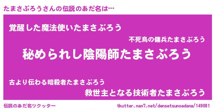 | 意味不明あだ名 | 『たまさぶろうフォーエバー』 |