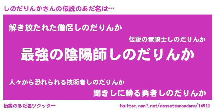 | 意味不明あだ名 | 『しのだりんかフォーエバー』 |
