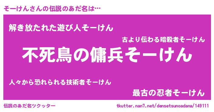| 意味不明あだ名 | 『住所不定無職そーけん(62歳)』 |