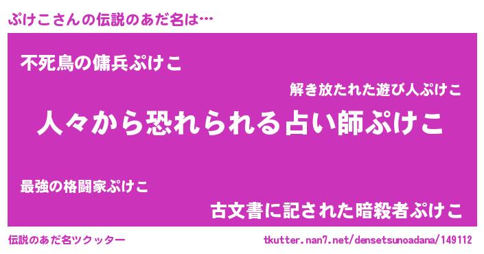 | ヒーロー風カッコイイあだ名 | 『正義の使者ぷけこ』『仮面プケダー』 |