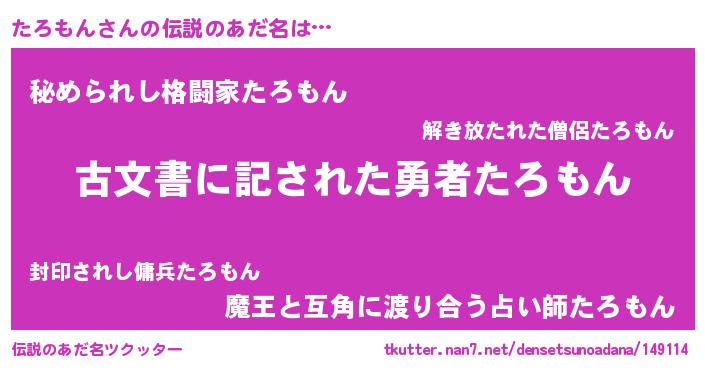 | 意味不明あだ名 | 『住所不定無職たろもん(86歳)』 |