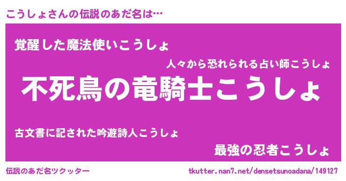 | ヒーロー風カッコイイあだ名 | 『仮面コウダー』『スーパーコウショ』 |
