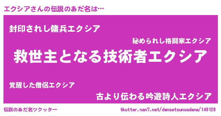| ヘコむあだ名 | 『エクにー』『エクシア(小並感)』 |