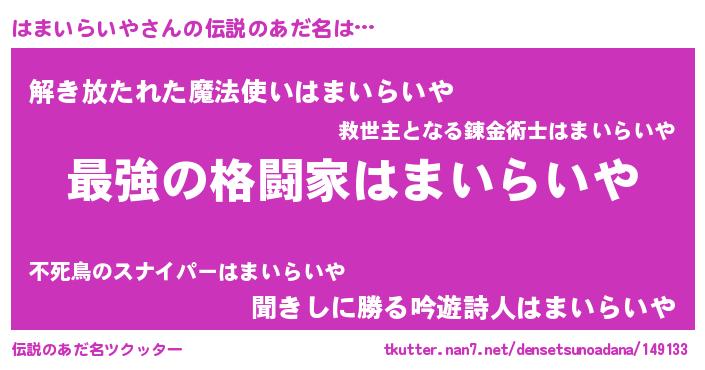 | 意味不明あだ名 | 『住所不定無職はまいらいや(8歳)』 |
