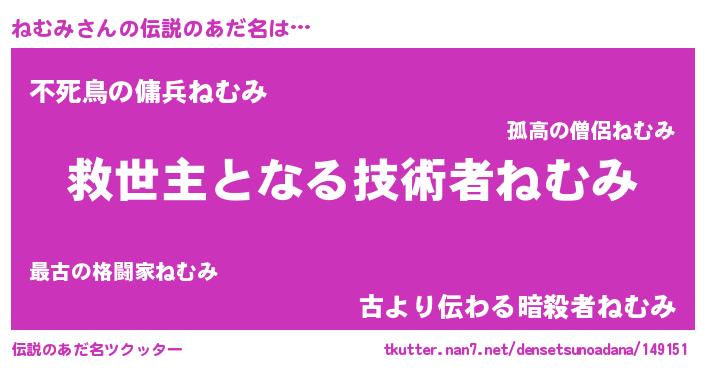 | ヒーロー風カッコイイあだ名 | 『慈愛の使者ねむみ』『スーパーネムミ』 |
