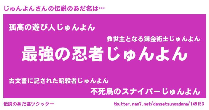 | ファンタジー風あだ名 | 『エターナルジュンヨンー』『ゼジュトゥ』 |