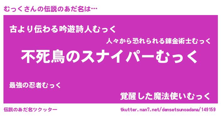 | 意味不明あだ名 | 『住所不定無職むっく(93歳)』 |