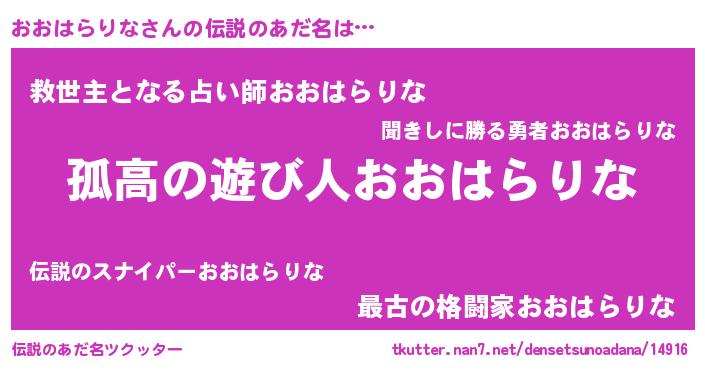 | 胡散臭い通販商品みたいなあだ名 | 『信頼と実績のペンダント…その名も「おおはらりな」』 |