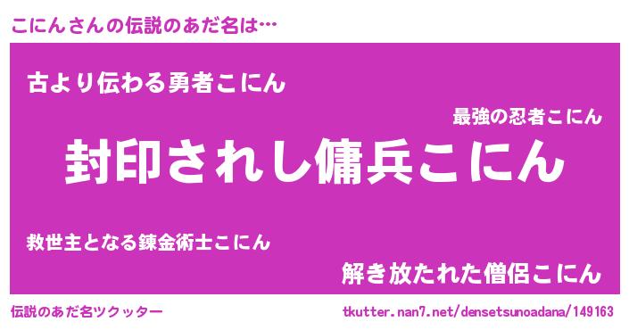 | 男性向けラノベタイトル風あだ名 | 『こにんに滅ぼされるだけの簡単なお仕事です』 |