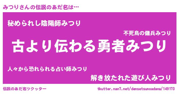 | ヒーロー風カッコイイあだ名 | 『ネオミツリ』『ウルトラみつりマン』 |
