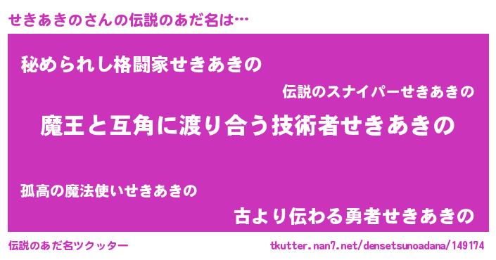 | ヘコむあだ名 | 『豆乳』『せきあきの(笑)』 |