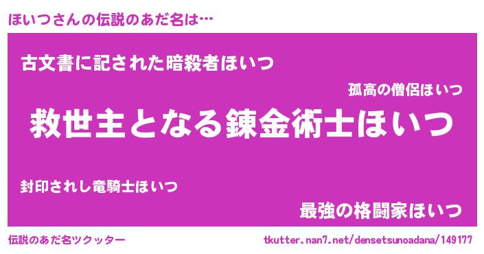 | ヒーロー風カッコイイあだ名 | 『天空の使者ほいつ』『ネオホイツ』 |