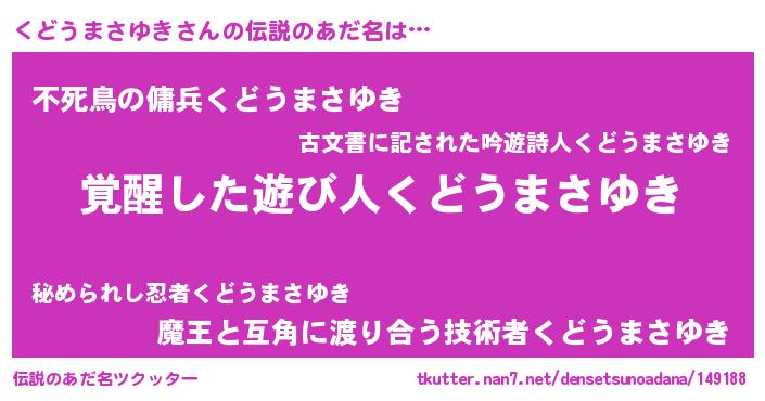 | 肩書あだ名 | 『くどうまさゆきリーダー』 |