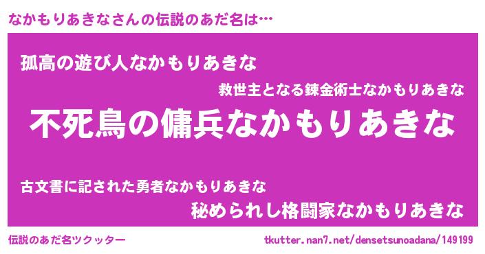 | ヒーロー風カッコイイあだ名 | 『スーパーナカモリアキナ』 |