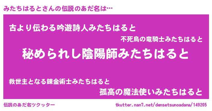 | ファンタジー風あだ名 | 『エターナルミタチハルトー』 |