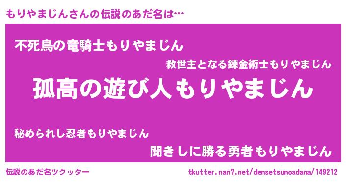| 女子向けラノベタイトル風あだ名 | 『シンデレラもりやまじん家の靴箱館』 |