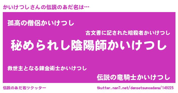 | ファンタジー風あだ名 | 『ゼカイトゥ』『エターナルカイケツシー』 |