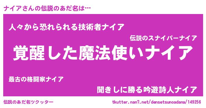 | 意味不明あだ名 | 『ニラ科ナイア属』『永久保存ナイア』 |