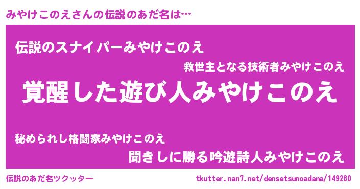 | ヒーロー風カッコイイあだ名 | 『仮面ミヤダー』『暗黒騎士ミヤ』 |