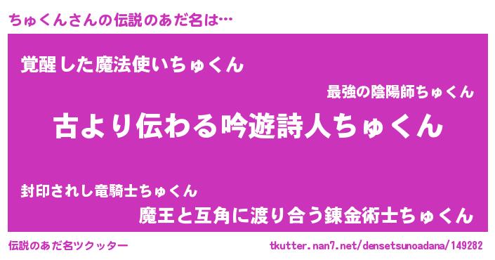 | 女子向けラノベタイトル風あだ名 | 『闇のちゅくん』『ちゅくん様がみてる』 |
