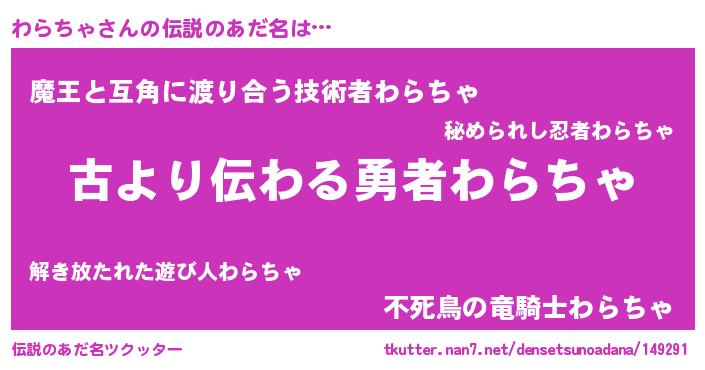 | ヒーロー風カッコイイあだ名 | 『ネオワラチャ』『愛の使者わらちゃ』 |