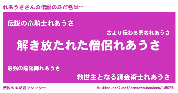 | 恥ずかしいあだ名 | 『レアリンリン』『プリティーれあうさ』 |
