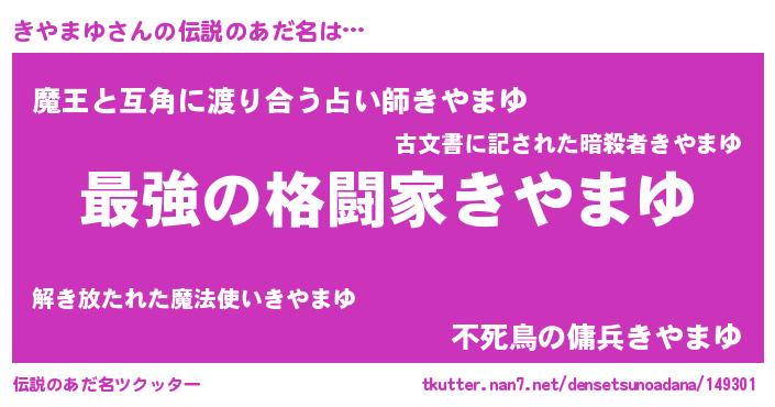 | 意味不明あだ名 | 『きやまゆフォーエバー』 |