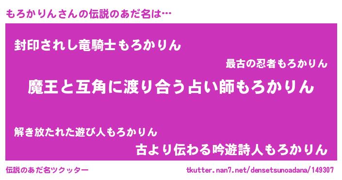 | ヒーロー風カッコイイあだ名 | 『愛の使者もろかりん』『ネオモロカリン』 |