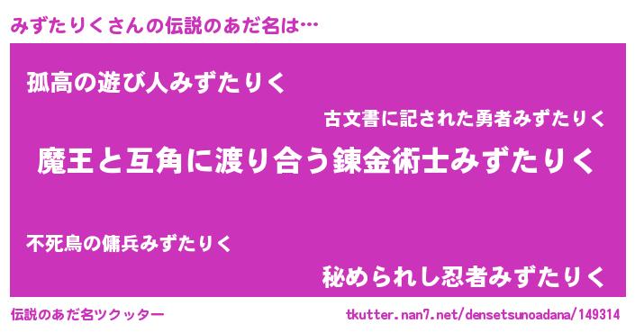 | 意味不明あだ名 | 『自称みずたりく』 |