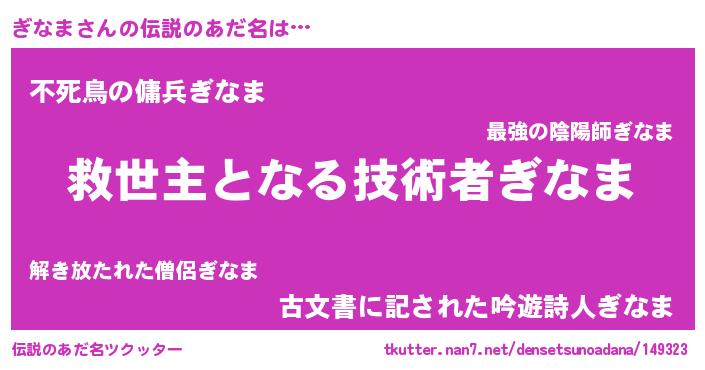 | ヒーロー風カッコイイあだ名 | 『天空の使者ぎなま』『スーパーギナマ』 |