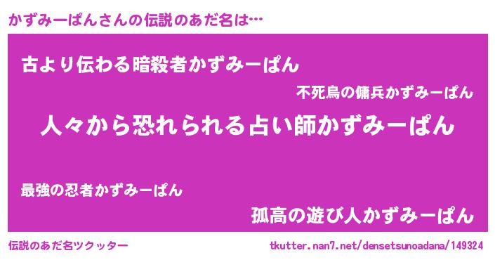 | 意味不明あだ名 | 『住所不定無職かずみーぱん(62歳)』 |