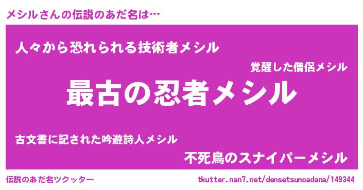 | ファンタジー風あだ名 | 『エターナルメシルー』『カークメシラー』 |