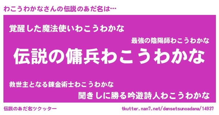 | 胡散臭い通販商品みたいなあだ名 | 『必ず成功する水晶球…その名も「わこうわかな」』 |