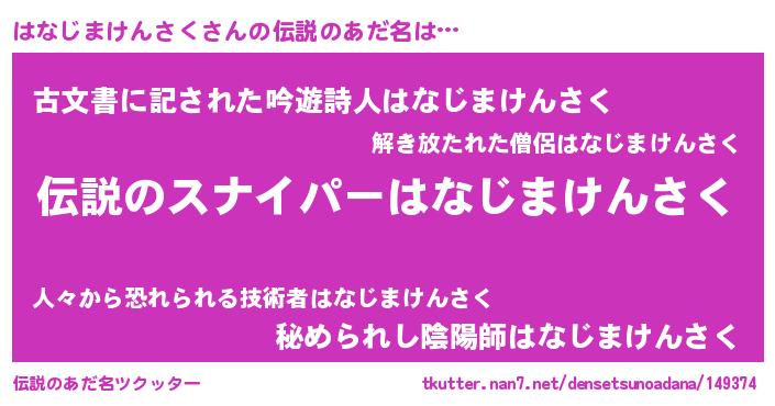 | 胡散臭い通販商品みたいなあだ名 | 『必ず成功する霊験あらたかなお札…その名も「はなじまけんさく」』 |