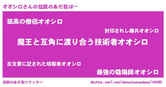 | 男性向けラノベタイトル風あだ名 | 『ノーゲーム・ノーオオシロ』 |