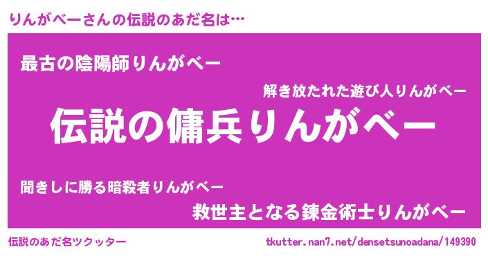 | 男性向けラノベタイトル風あだ名 | 『りんがべーの憂鬱』 |