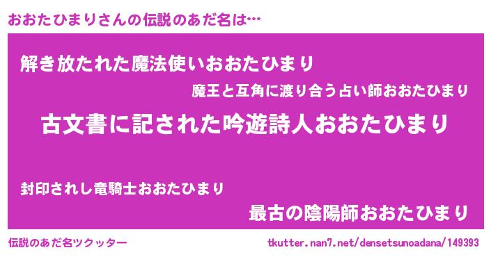 | ポケモン風あだ名 | 『ゼニオオ』『ヒオオタヒマリ』 |