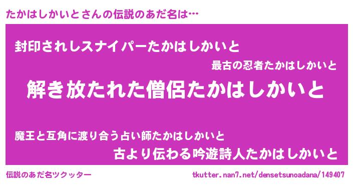 | 意味不明あだ名 | 『自称たかはしかいと』 |