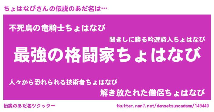 | 意味不明あだ名 | 『ちょはなびフォーエバー』 |