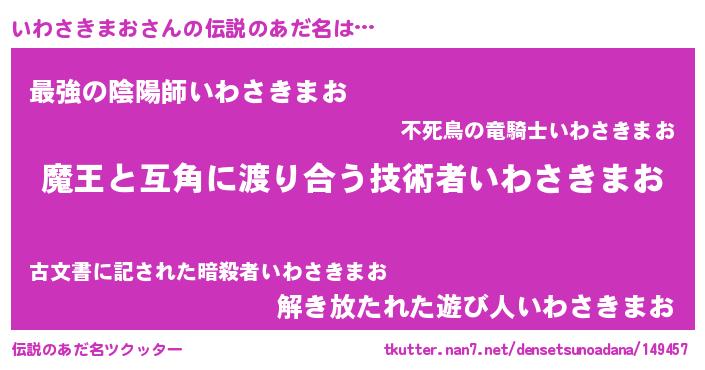 | 肩書あだ名 | 『いわさきまお教授』『いわさきまお総統』 |