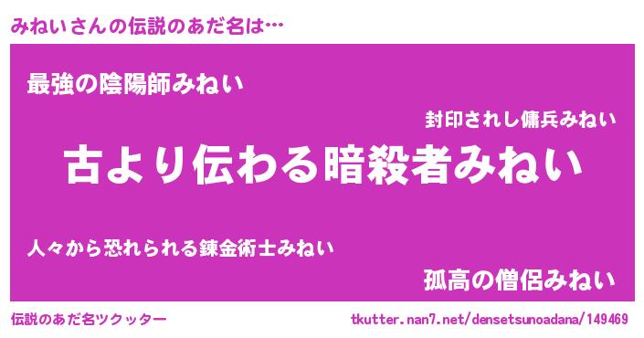 | ヘコむあだ名 | 『みねい(笑)』『酢こんぶ』『みねお』 |