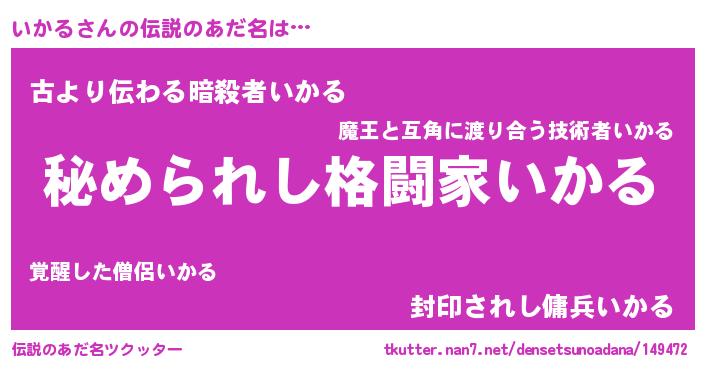 | 意味不明あだ名 | 『いかるフォーエバー』『自称いかる』 |