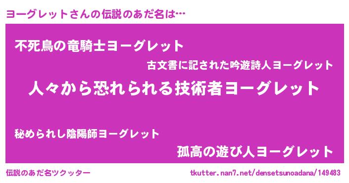 | 意味不明あだ名 | 『住所不定無職ヨーグレット(11歳)』 |