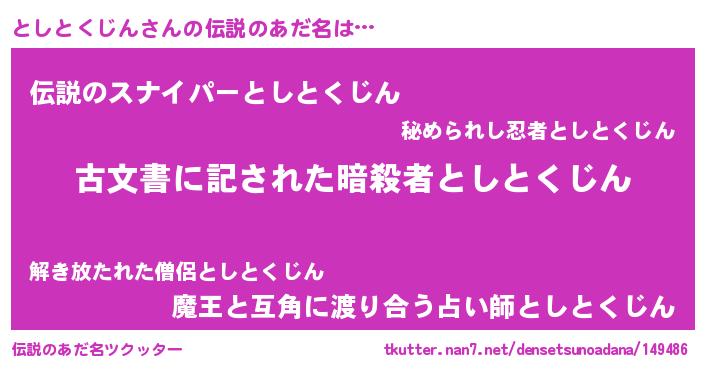 | 意味不明あだ名 | 『永久保存としとくじん』 |