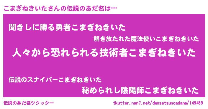 | ヒーロー風カッコイイあだ名 | 『友情の使者こまぎねきいた』 |